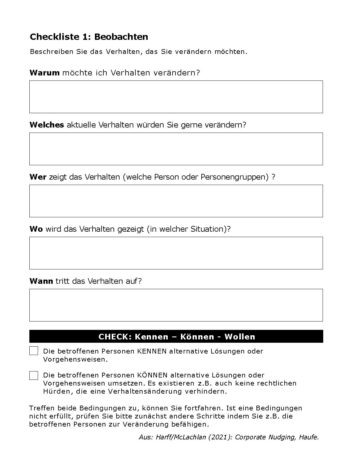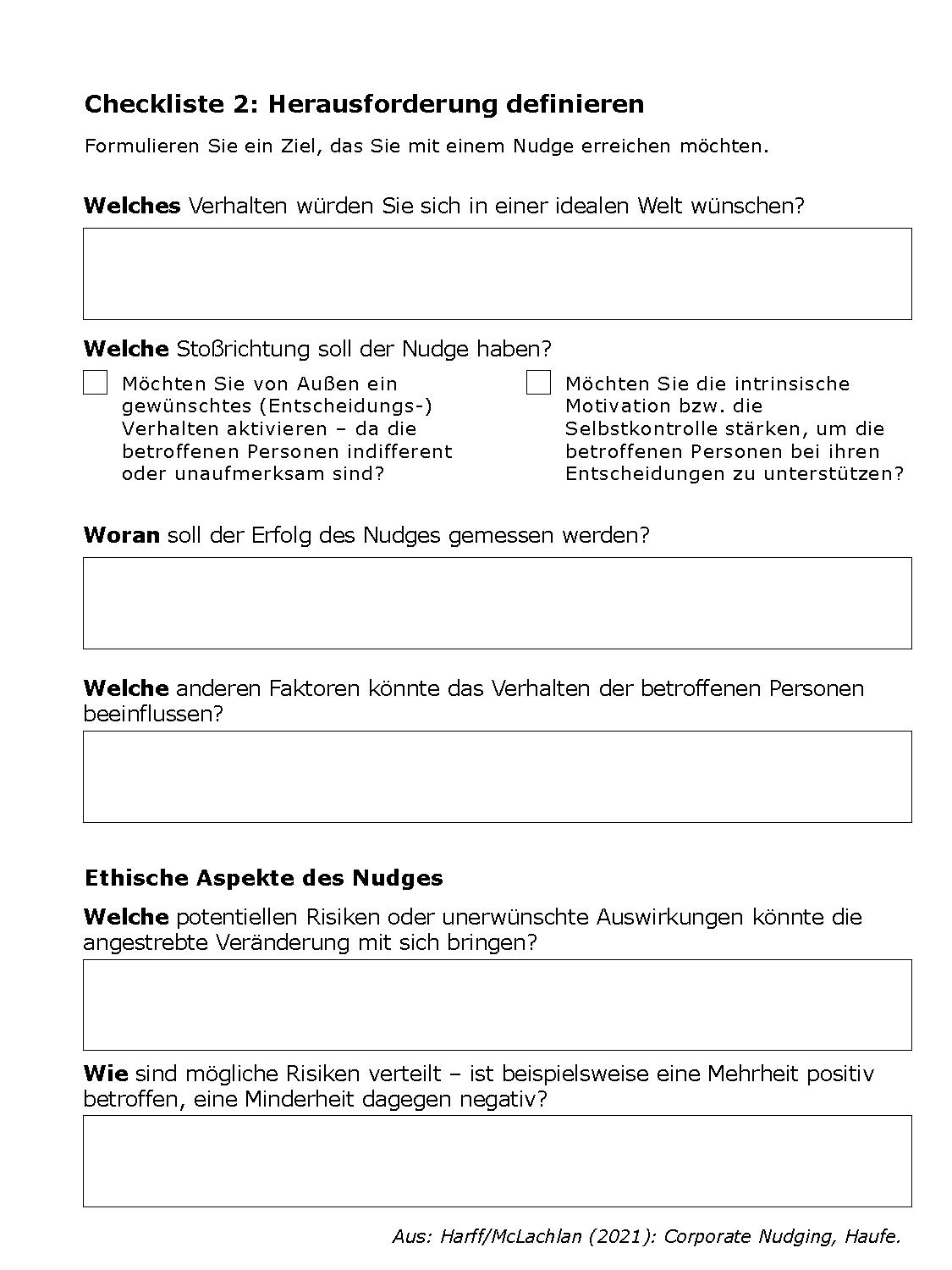 Im Buch stellen wir einen Leitfaden vor, damit Sie in Ihren Organisationen Nudges entwickeln können. Die aufgezeigten Schritte im Leitfaden liefern ein Denkraster, das Ihnen Orientierung in den verschiedenen, idealtypischen Schritten bietet.